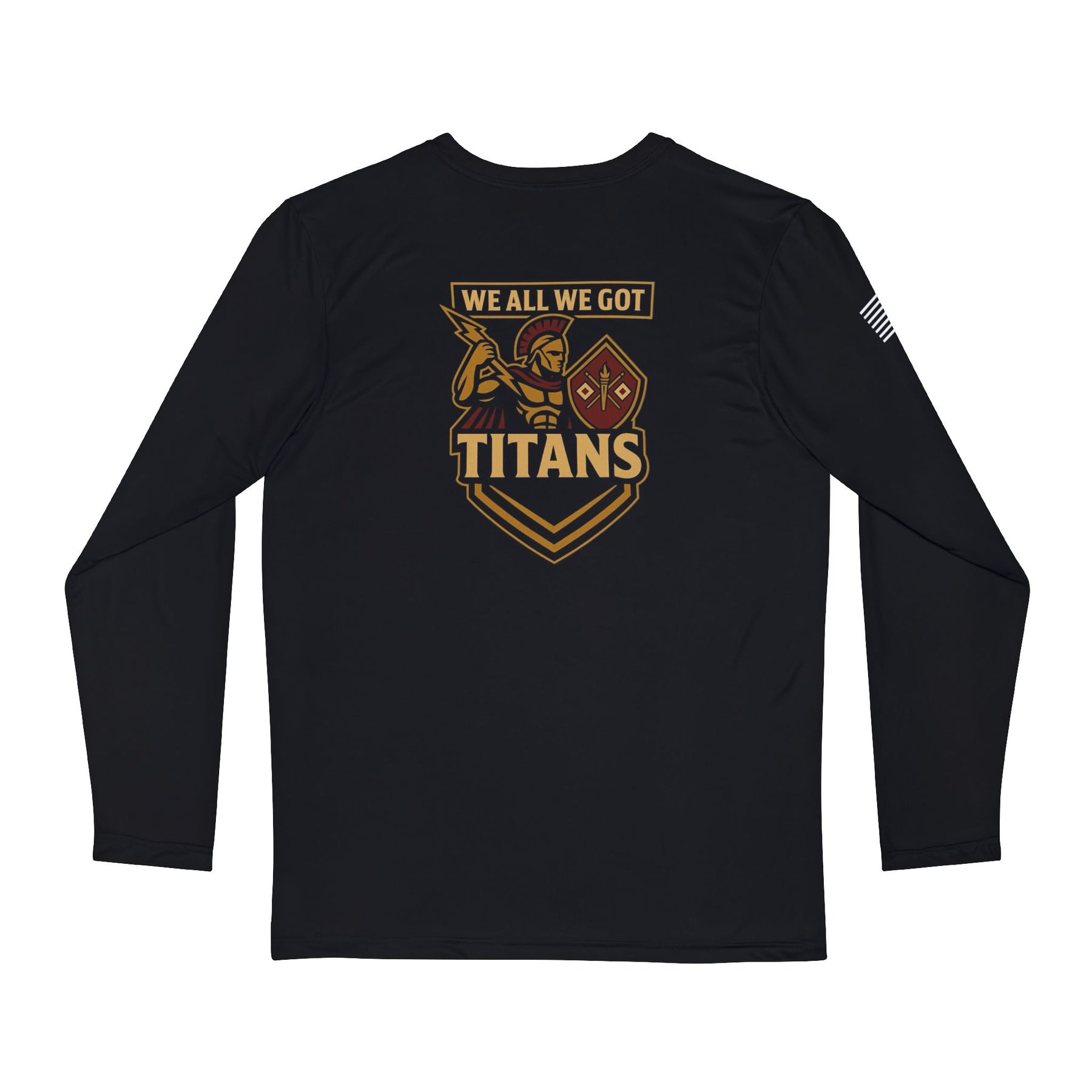 Made with 100% brushed polyester, these long-sleeve tees deliver all the style and comfort one can handle. Impeccably soft, these shirts are the perfect canvas for your art. Size and care information printed inside the collar.